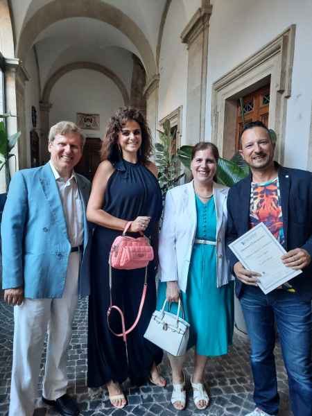 ”Ho scelto la capra come soggetto di questa mia opera”, precisa Cristoforo, “essendo la capra uno degli animali simbolo dell’ Italia. Che, non dimentichiamo, è stata - e in parte è tuttora – un Paese fortemente agricolo, dove animali come appunto la capra, l’asino, il bue, tipici per la loro umiltà e pazienza, a lungo hanno dominato il paesaggio”. Mons. Jean – Marie Gervais, Presidente di “Tota pulchra”, ha portato i saluti dell’associazione alle responsabili della galleria, Anna Maria Borsatti e Angiolina Marchese: prospettando anche possibili sinergie tra l’associazione e “La Pigna”, sul piano anzitutto della scoperta di nuovo talenti artistici.