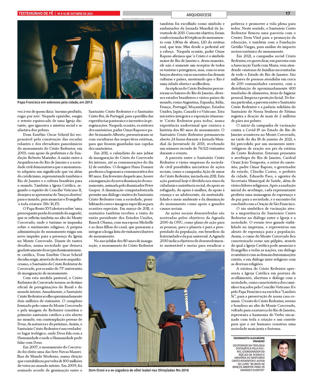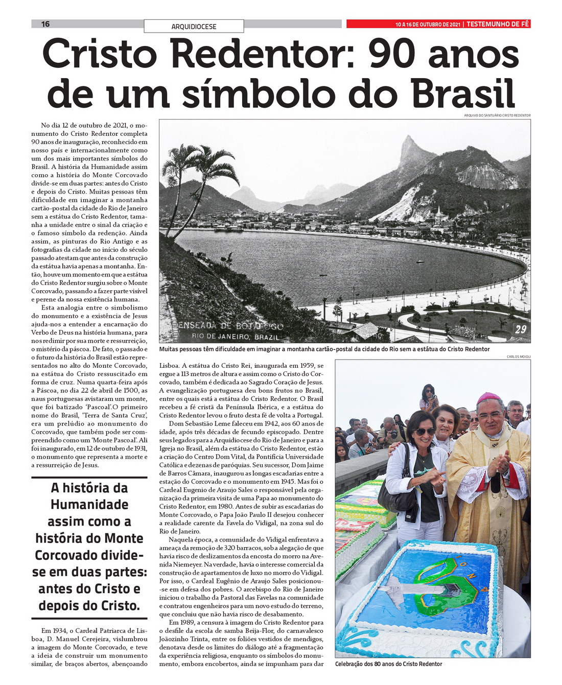 Na última terça-feira, dia 12 de outubro o Santuário Cristo Redentor completou 90 anos. A solenidade foi iniciada com uma missa celebrada pelo Arcebispo do Rio Dom Orani de Tempesta na catedral metropolitana do Rio de Janeiro, com a presença do Reitor do Santuário, Padre Omar Raposo e de várias autoridades como o Governador do Rio, Cláudio Castro e o Prefeito Eduardo Paes e o presidente da Tota Pulchra Associação Cultural e do vice-presidente Danilo Maira. A cantora lírica brasileira, Flávia Correia, cantou Ave Maria de Caccini com a participação do Coro da Princesa, regido pelo Maestro Leonardo Randolfo. Flávia também esteve à frente da organização dos shows culturais que aconteceram na semana de 12 a 16 de outubro, num palco que foi armado na área externa da catedral.