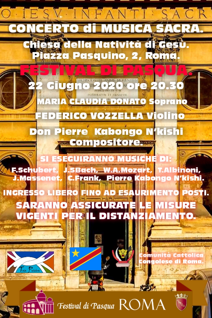 Il giorno lunedì 22 giugno 2020, si terrà nella Chiesa della natività di nostro Signore in Piazza Pasquino 2 un attesissimo concerto con in programma musiche di Franz Schubert, Charles Gounod, Jules Massenet, ma anche Gaetano Donizetti, Vincenzo Bellini, Gioachino Rossini, Giuseppe Verdi, Giacomo Puccini, con la partecipazione del soprano Maria Claudia Donato, del violinista Federico Vozzella e dei complessi del Festival.