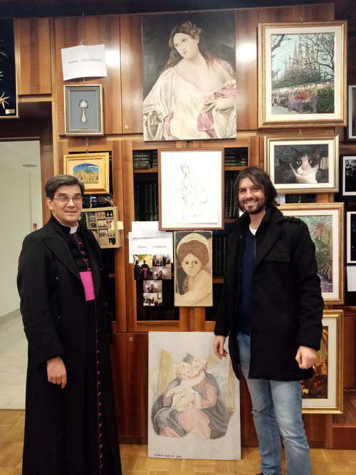 Dal 16 al 20 dicembre 2019, presso la Corte dei Conti, si è tenuta la seconda edizione della Mostra di Natale. Il giorno 16 dicembre, giornata inaugurale, Mons. Jean Marie Gervais ha benedetto la Mostra degli Artisti, alla quale ha partecipato anche Simone Gabriele, artista di Tota Pulchra.