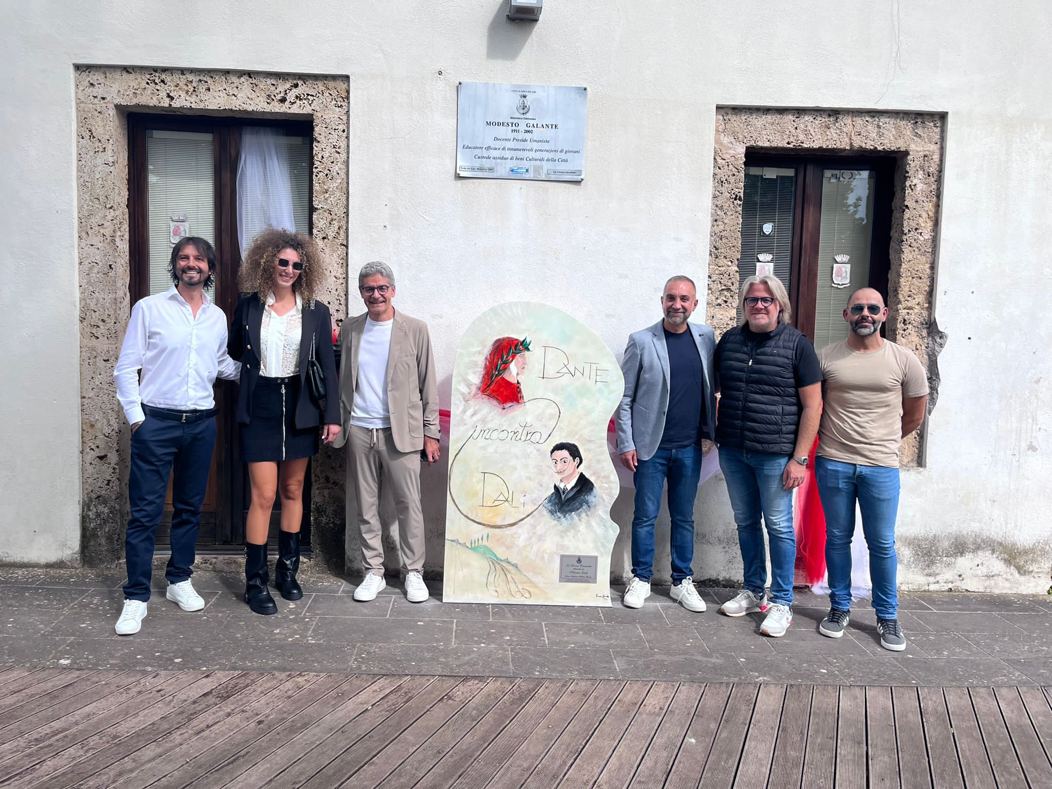 L'opera ha una duplice funzione, sia quella di arredo urbano, che punto informativo della biblioteca M. Galante per osservare dal vivo i volumi della Divina Commedia illustrati da S. Dalì donati dalla sig. Irma D' Amico in Valente alla cittadinanza. La cerimonia ha visto presenti il sindaco Massimiliano Quadrini, il vicesindaco Francesco Romano , l'assessore alla cultura Stefano Vitale e il consigliere Camilla Di Cocco responsabile della biblioteca comunale.