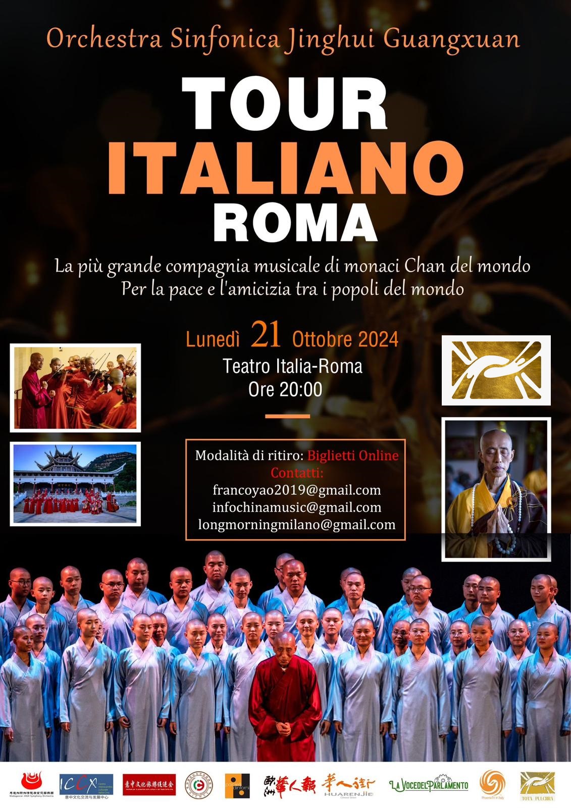 Roma, 1 ottobre 2024 – Siamo lieti di annunciare l’atteso evento musicale "Tour Italiano Roma", organizzato dall’Orchestra Sinfonica Jinghui Guangxuan con il patrocinio di Tota Pulchra. Questo straordinario concerto si terrà lunedì 21 ottobre 2024 presso il prestigioso Teatro Italia-Roma alle ore 20:00.